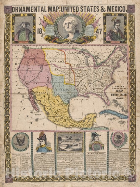 Historic 1847 Map - Ornamental Map Of The United States & Mexico - Mexico - Maps - United States - Maps Of North America.