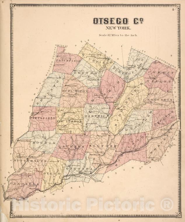 Historic 1868 Map - Otsego Co. New York. - Otsego County (N.Y.) - New York (State) - Otsego County Atlases Of The United States - Atlas Of Otsego Co, New York