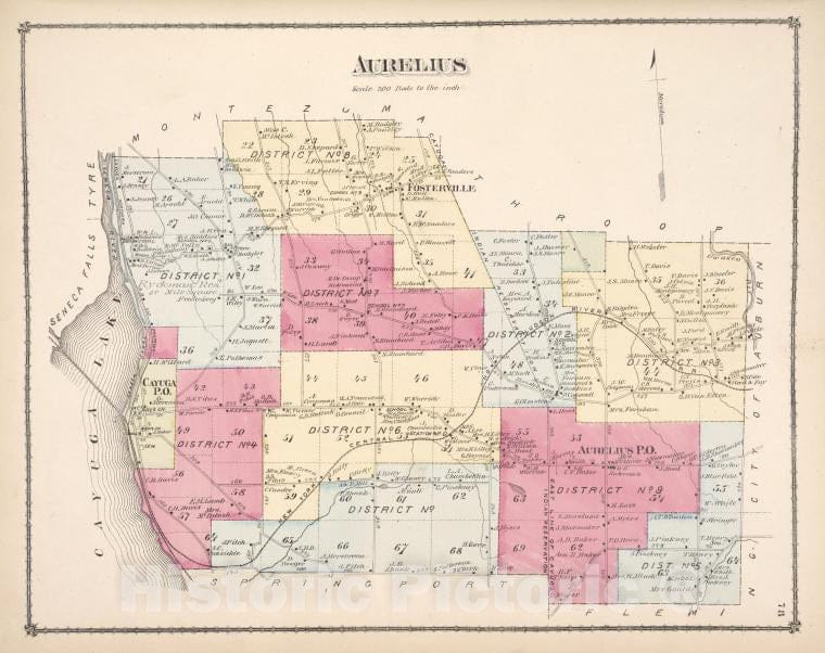 • .Historic Map - Aurelius [Township] - Atlases Of The United States - County Atlas Of Cayuga, New York. - Vintage Wall Art