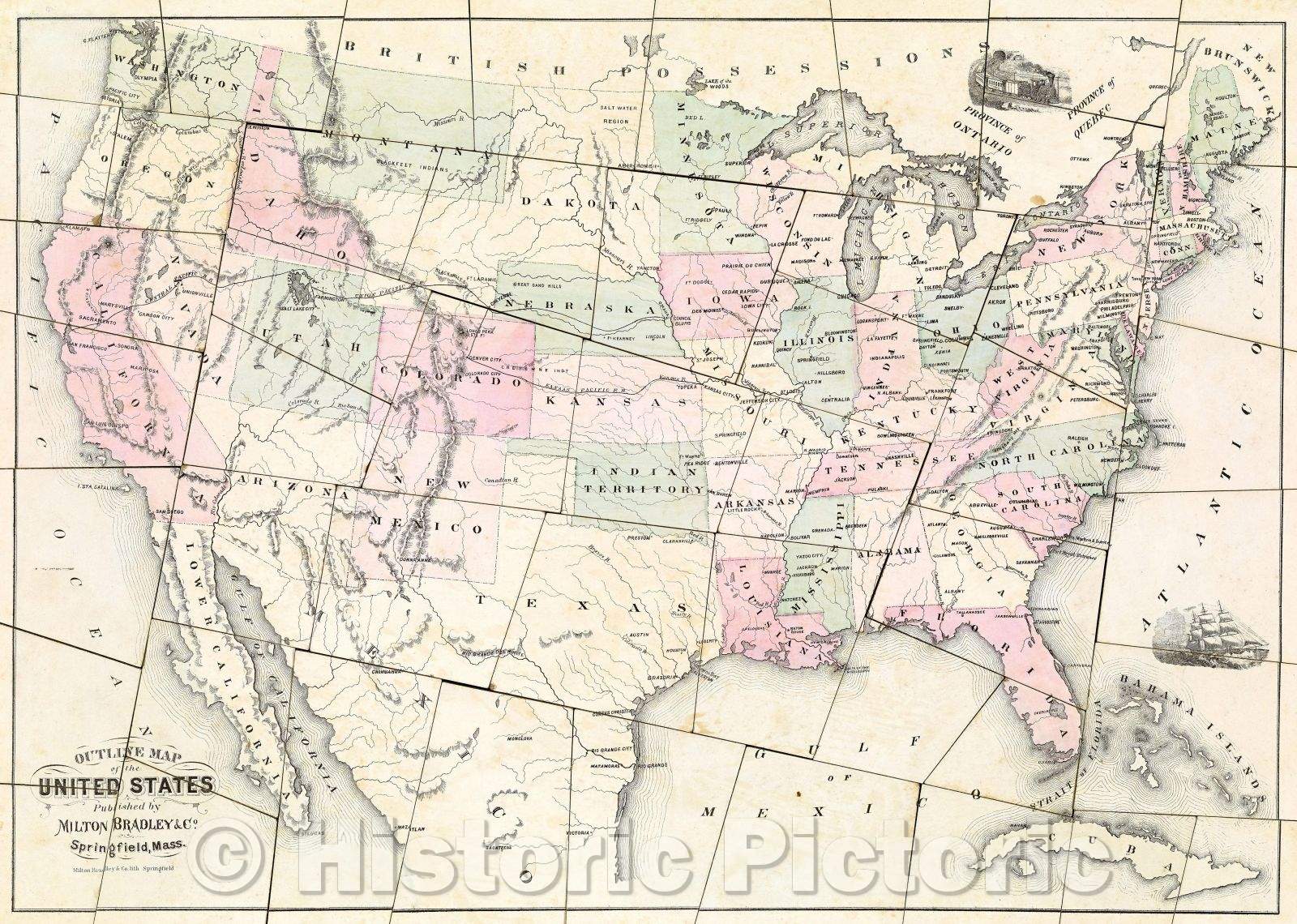 Historic Map : Dissected Outline Map of the United States of America, Vintage Wall Art