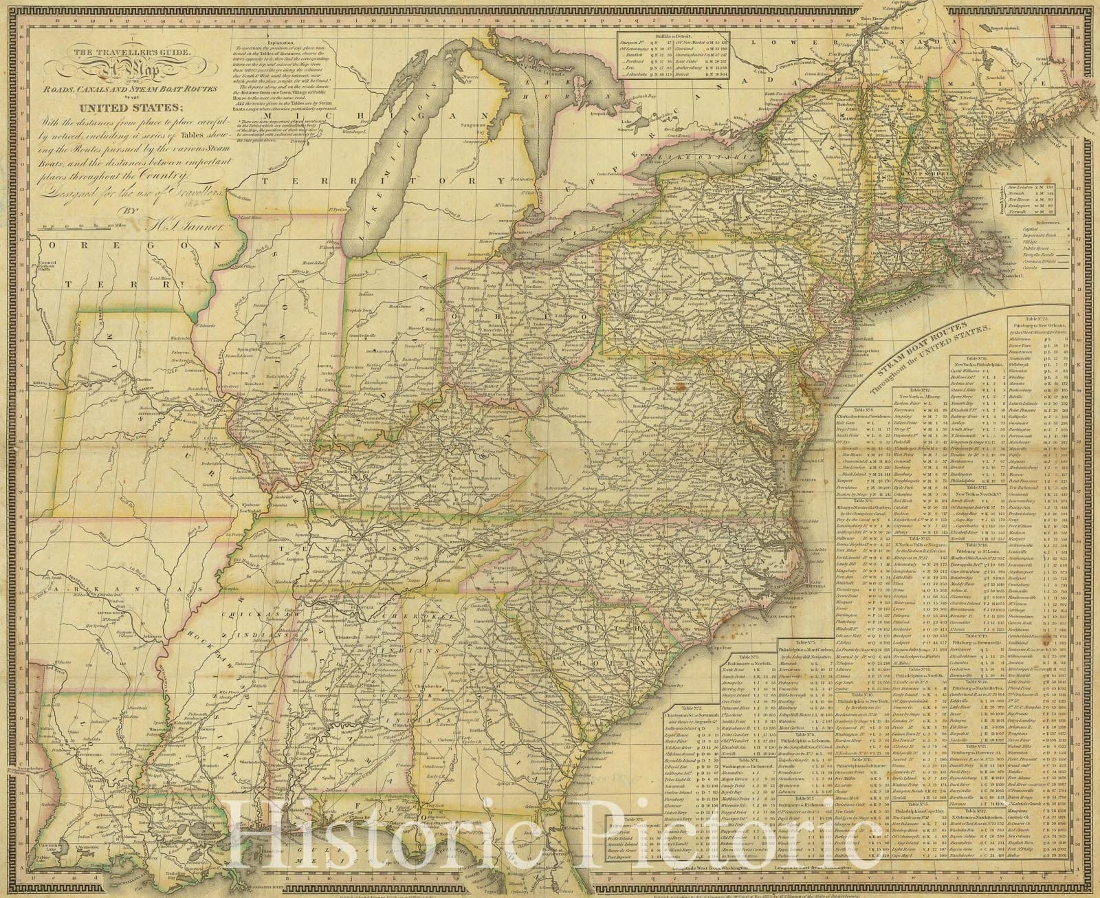 Map of the roads, canals and steam boat routes of the United States : with the distances from place to place carefully noticed ... / designed for the use of travellers by H.S. Tanner