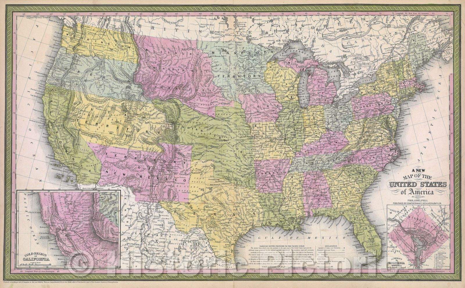 A New Map of the United States of America by J.H. Young, 1850
