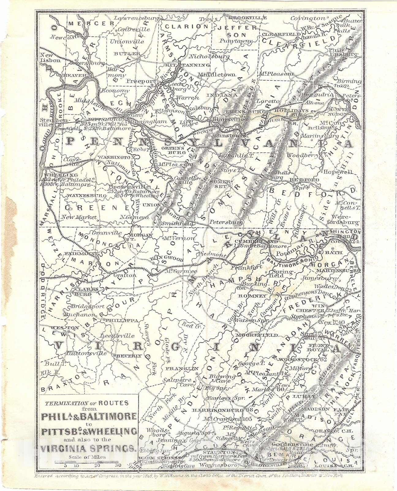 Historic Map : Railroad Maps of the United States, Blue Ridge and Alleghenies 1848 , Vintage Wall Art