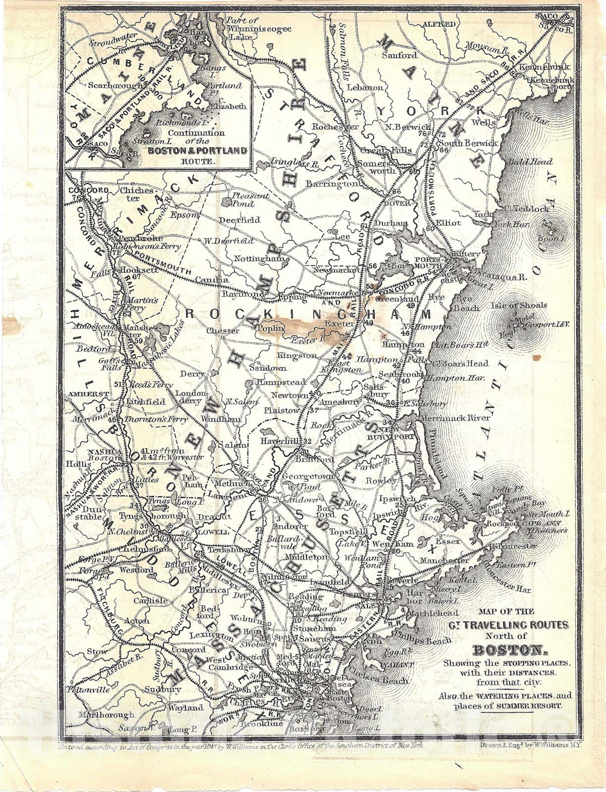 Historic Map : Railroad Maps of the United States, Boston & North of Boston 1848 , Vintage Wall Art