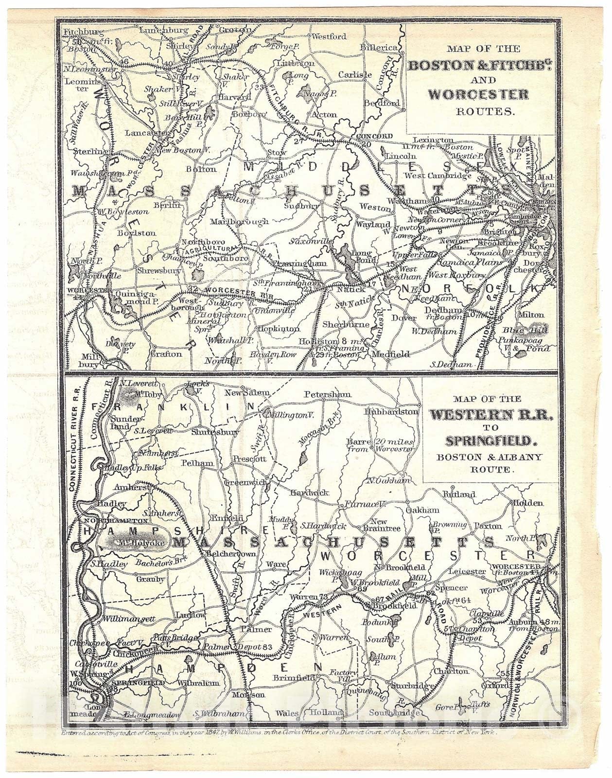 Historic Map : Railroad Maps of the United States, Boston & West of Boston 1848 , Vintage Wall Art