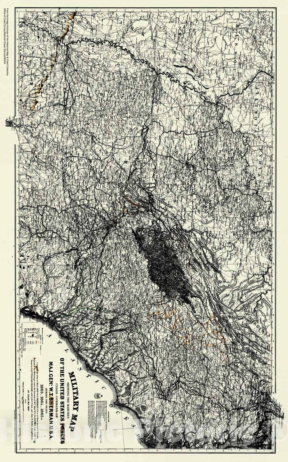 • Historic Nautical Map - Showing The Marches Of The United States Forces Under Command Of Maj. Gen. W.T. Sherman, 1863, 1864, 1865, NC, 1865 Civil War Historic Nautical Map - Vintage Poster Wall Art Reprint - 0