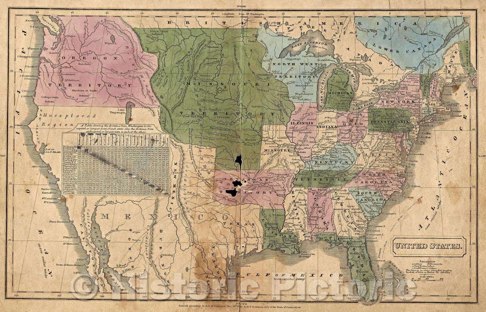 • .Historic Map : United States., 1823 , Vintage Wall Art