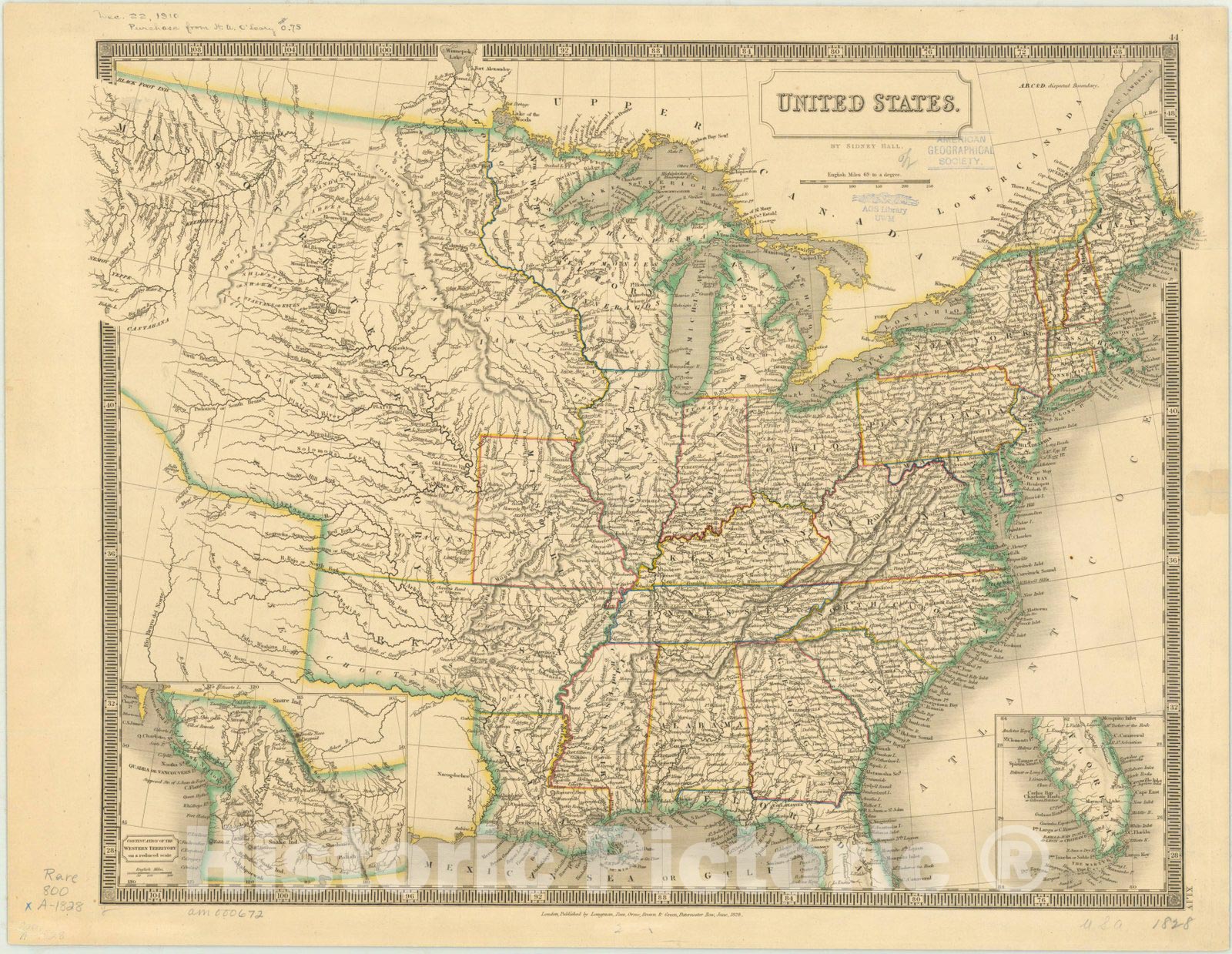 Map : United States 1828, United States , Antique Vintage Reproduction