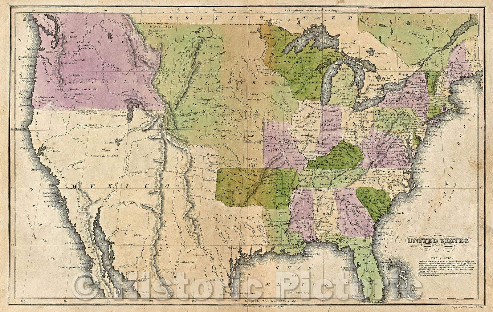 Historic Map : United States, c. 1835 , Vintage Wall Art