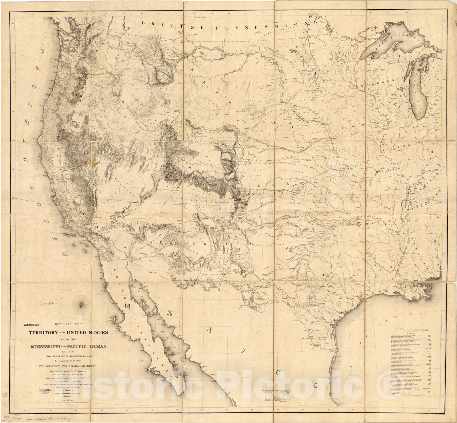 Map of the territory of the United States from the Mississippi to the Pacific Ocean : ordered by Jeff'n Davis, Secretary of War to accompany the reports of the explorations for a railroad route / Compiled from authorized explorations and other reliable