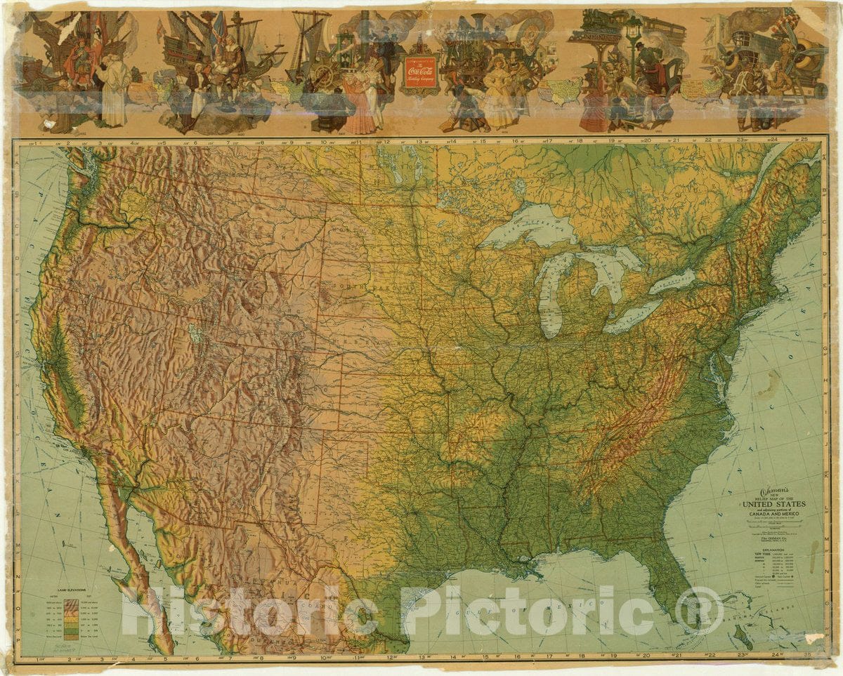 • .Map : United States 1942, Ohman's new relief map of the United States ; and adjoining portions of Canada and Mexico , Antique Vintage Reproduction