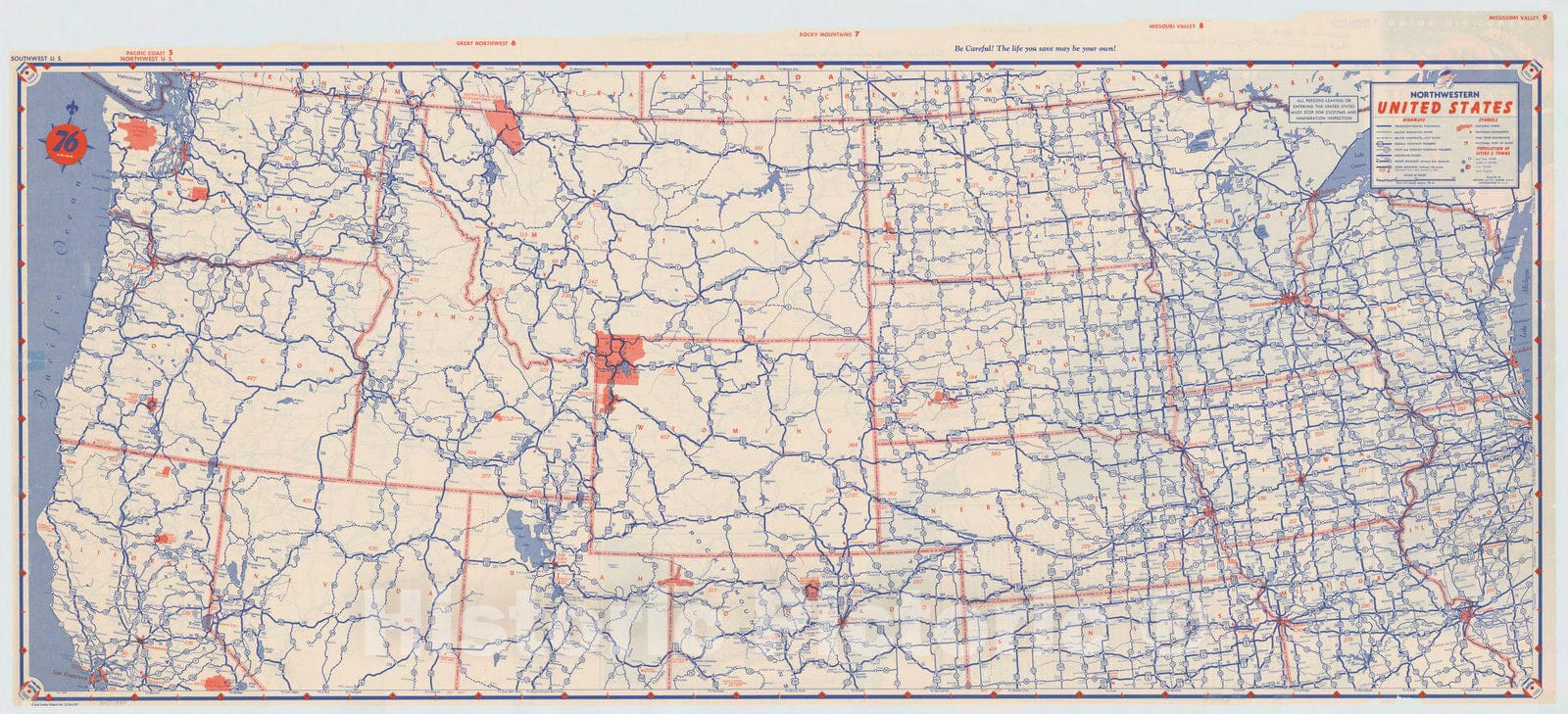 Map : United States 1951 1, Western United States road map , Antique Vintage Reproduction