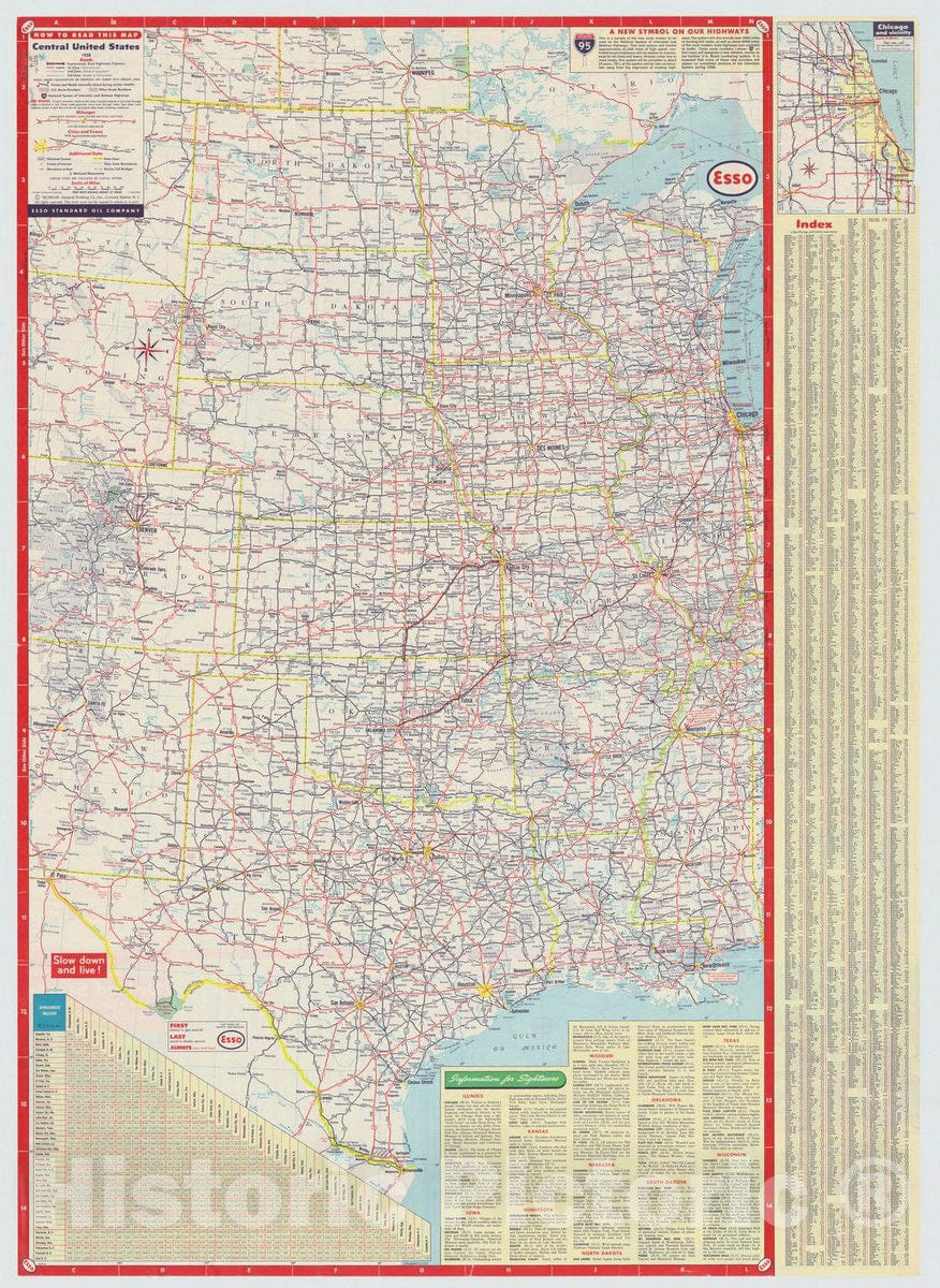 Map : United States 1958 1, Central and western United States and adjacent Canada interstate map, Antique Vintage Reproduction