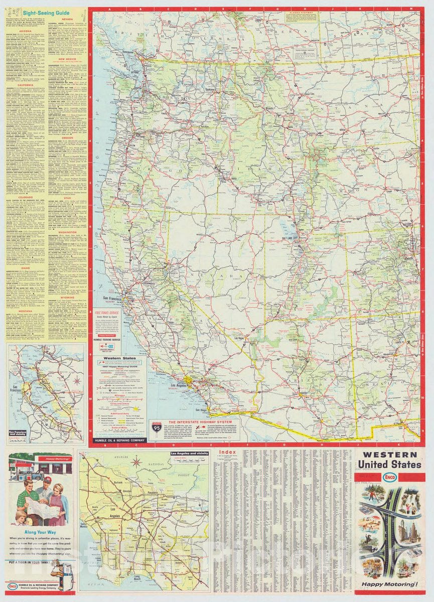• .Map : United States 1967 2, Western United States : happy motoring! , Antique Vintage Reproduction