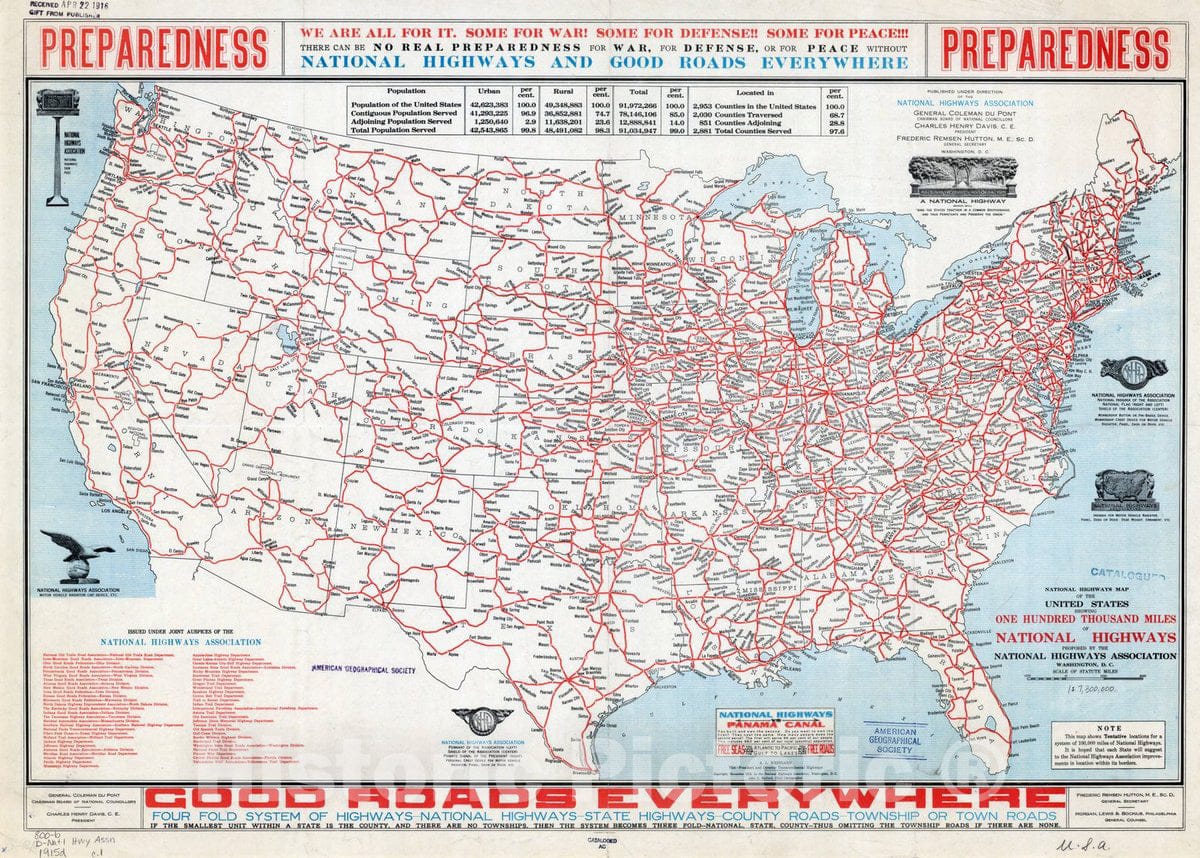 National highways map of the United States showing one hundred thousand miles of national highways : proposed by the National Highways Association / published under direction of the National Highways Association ; John C. Mulford, chief cartographer