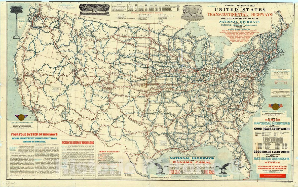 Map : United States Highways 1915 2, Antique Vintage Reproduction