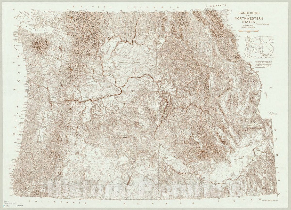 Map : United States, northwest 1965, Landforms of the northwestern states , Antique Vintage Reproduction