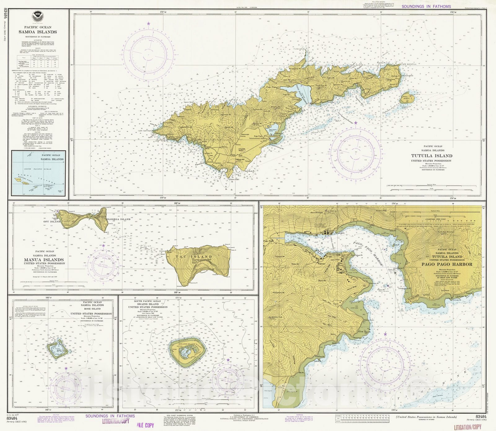 • .Historic Nautical Map - United States Possessions In Samoa Islands, AS, 1977 NOAA Chart - Vintage Wall Art