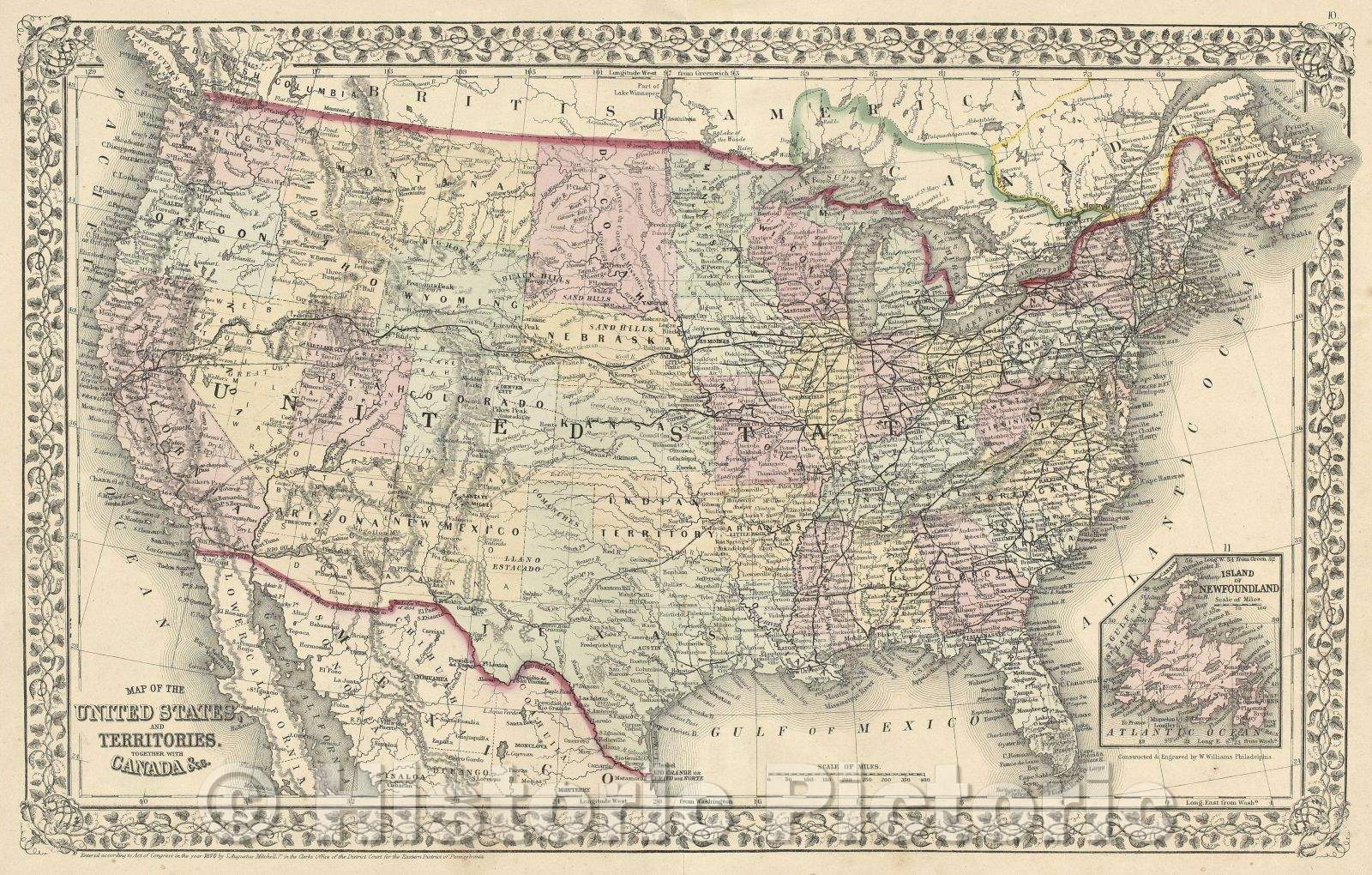 Historic Map : Map of the United States, and Territories Together with Canada andc., 1870 , Vintage Wall Art