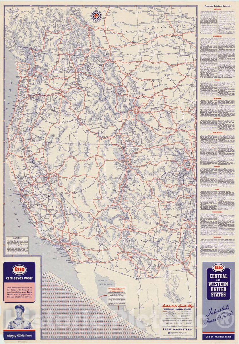 Map : United States, western 1942 1, Interstate route map [of the] central and western United States, Antique Vintage Reproduction