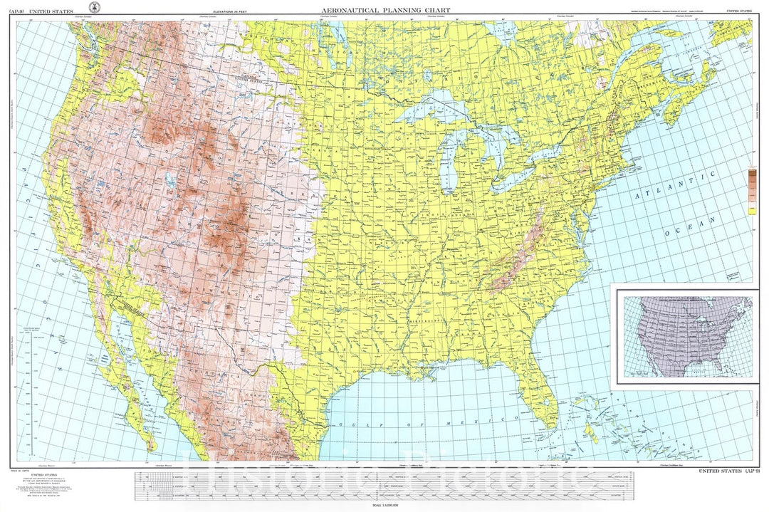 Historic Nautical Map - United States Excluding Alaska And Hawaii, CA, ME, WA, FL, 1960 AeroNOAA Chart - Vintage Wall Art