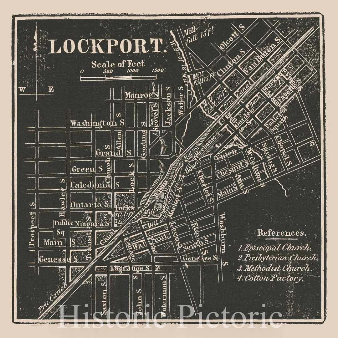 Historic 1838 Map - Lockport. - New York (State) - Lockport (N.Y.) - Atlases Of The United States - New York Atlas. - Vintage Wall Art