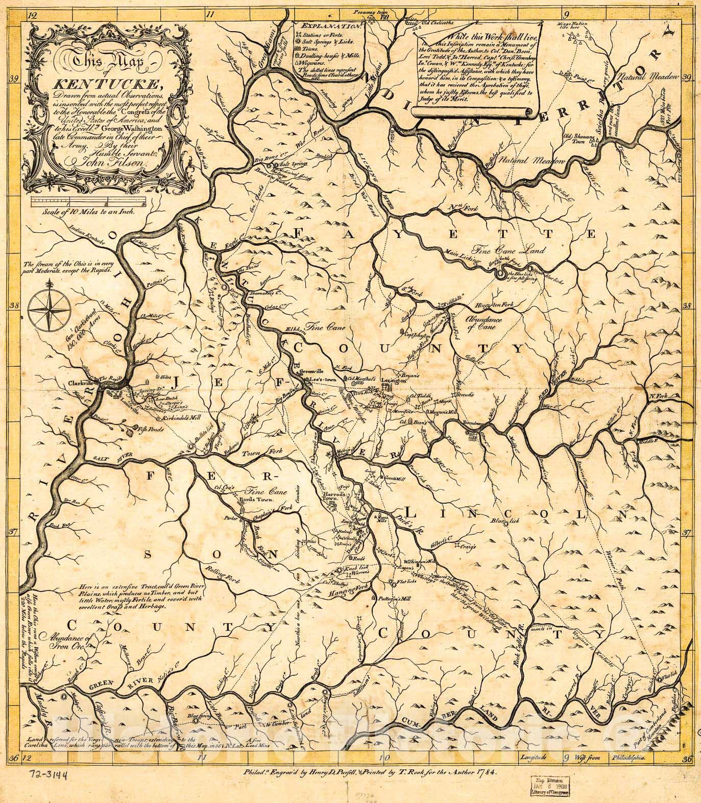 Historic 1784 Map - This map of Kentucke : Drawn from Actual observations, is inscribed with The Most Perfect Respect, to The Honorable Congress of The United States of America