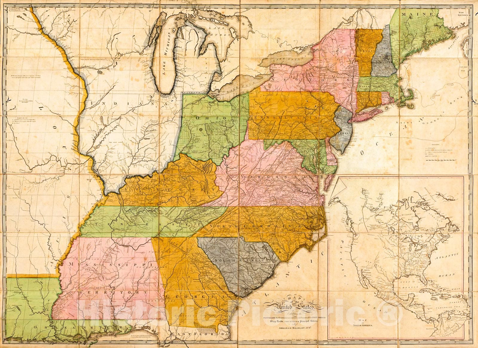Historic 1804 Map - Map of The United States, exhibiting The Post-Roads, The situations, Connections & Distances of The Post-Offices, Stage Roads, Counties & Principal Rivers
