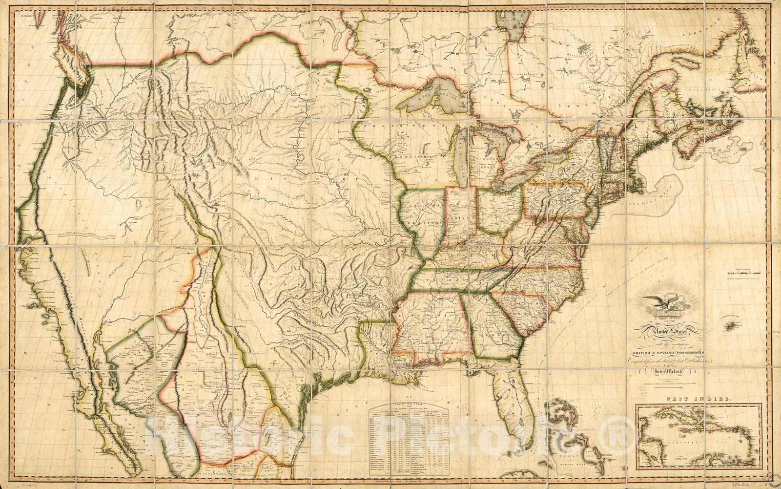 Historic 1816 Map - Map of The United States of America : with The contiguous British and Spanish Possessions 2