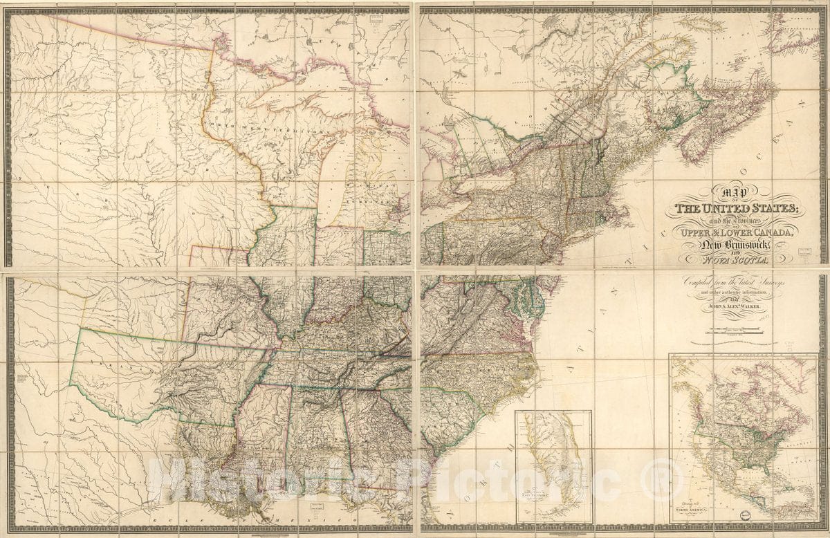 Historic 1827 Map - Map of The United States and The Provinces of Upper & Lower Canada, New Brunswick, and Nova Scotia