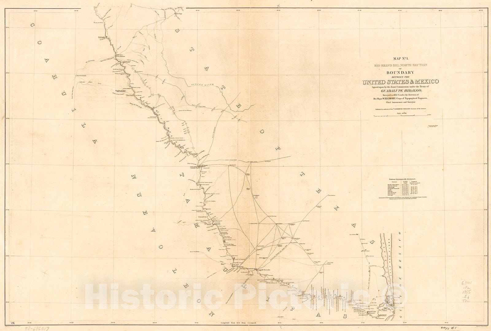 Historic 1852 Map - Boundary Between The United States & Mexico Agreed Upon by The Joint Commission Under The Treaty of Guadalupe Hidalgo : surveyed in 1852-53