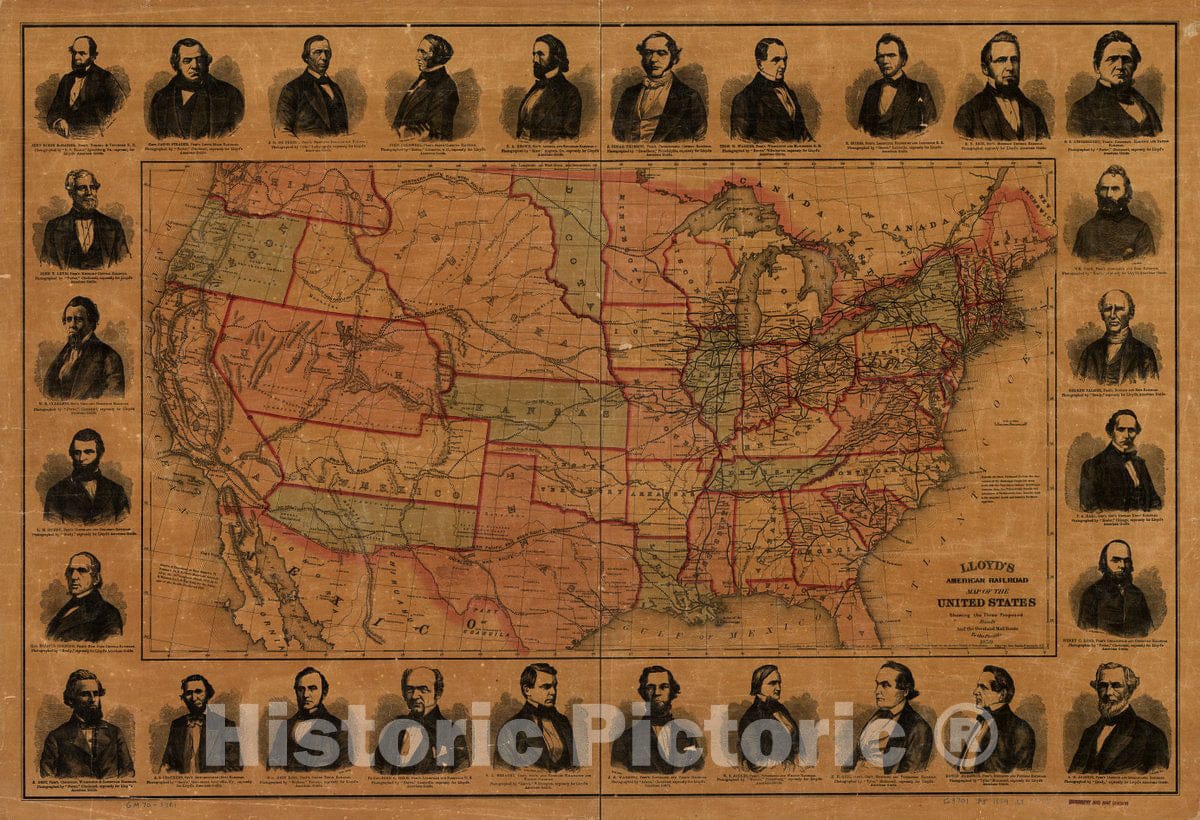 Historic 1859 Map - Lloyd's American Railroad map of The United States, Showing The Three Proposed Roads and The Overland Mail Route to The Pacific,