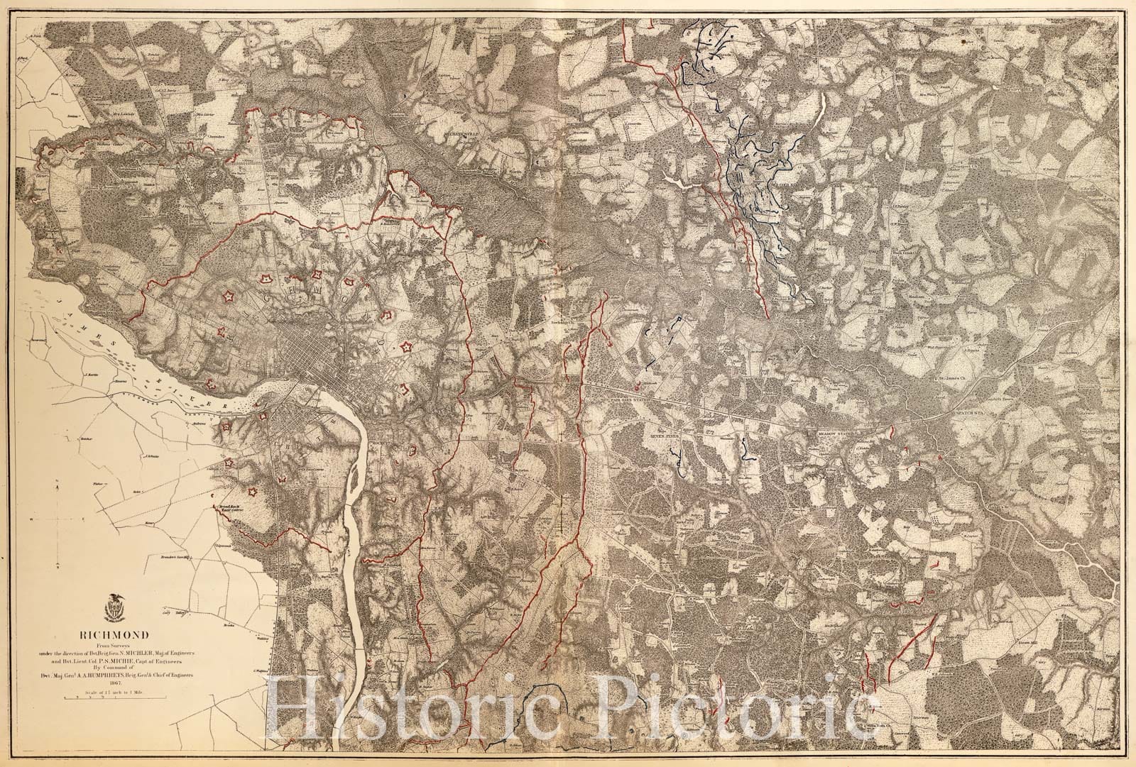 We print high quality reproductions of historical maps, photographs, prints, etc. Because of their historical nature, some of these images may show signs of wear and tear - small rips, stains, creases, etc. We