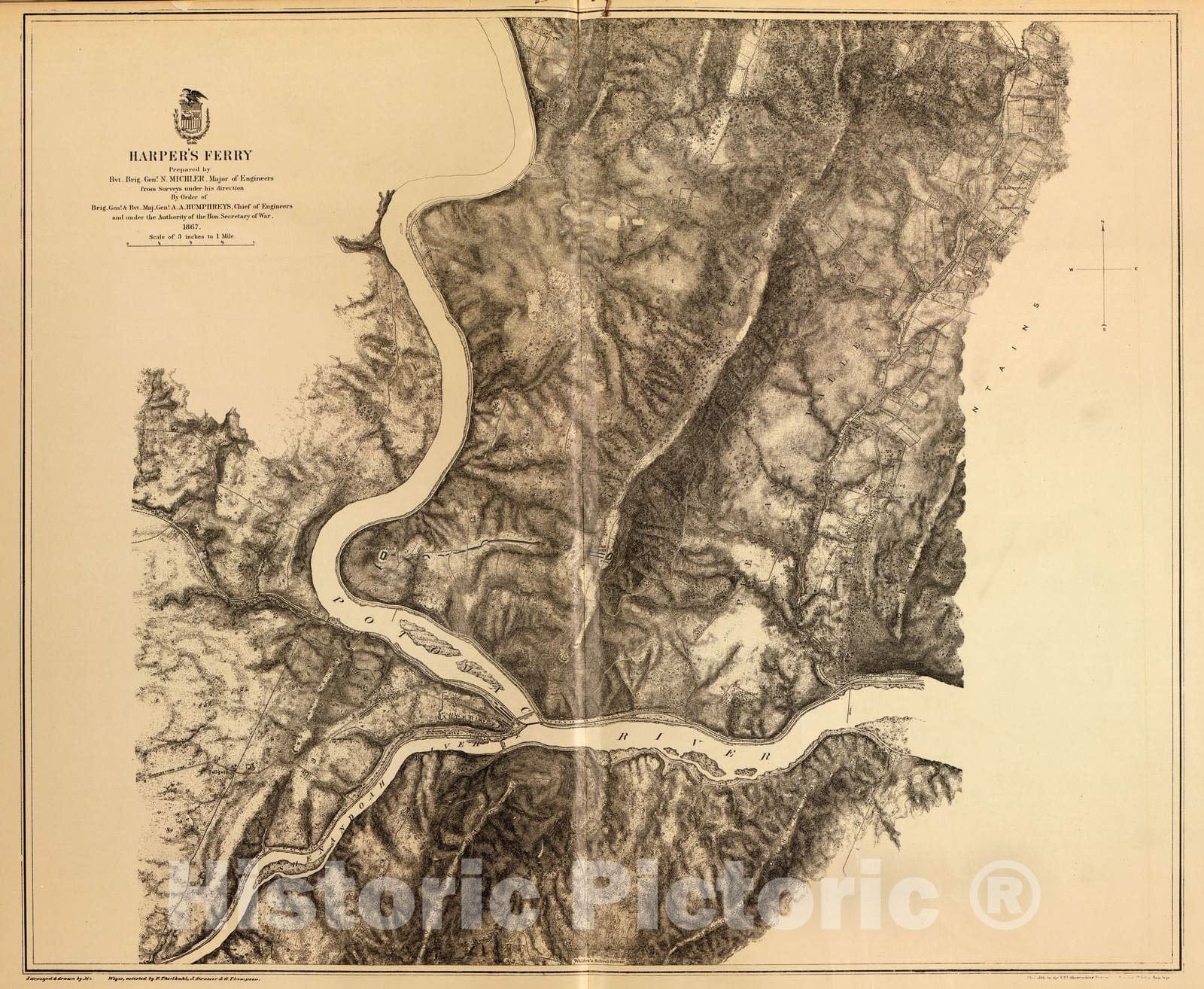 Historic 1883 Map - Military maps of The United States. - Harper's Ferry, West Va, 1867