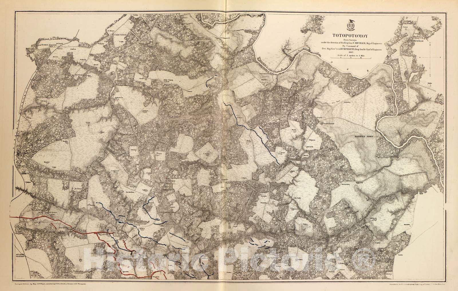 • Historic 1883 Map - Military maps of The United States. - Totopotomoy, Va, 1867