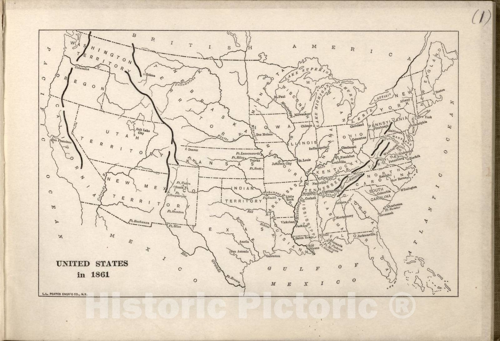 Historic 1914 Map - Campaigns of The American Civil War-Atlas - United States in 1861 - American Civil War Atlas