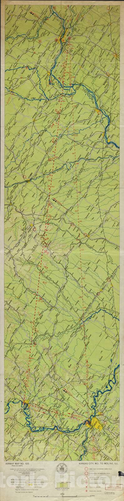 Historic 1924 Map - Aeronautical Strip maps of The United States. - No. 105, 1930 - Air Corps map