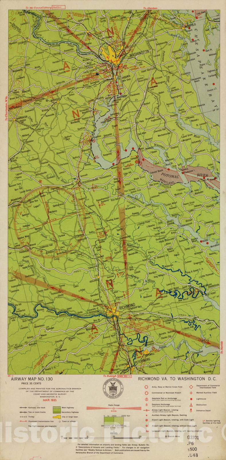 Historic 1924 Map - Aeronautical Strip maps of The United States. - No. 130, 1935 - Air Corps map