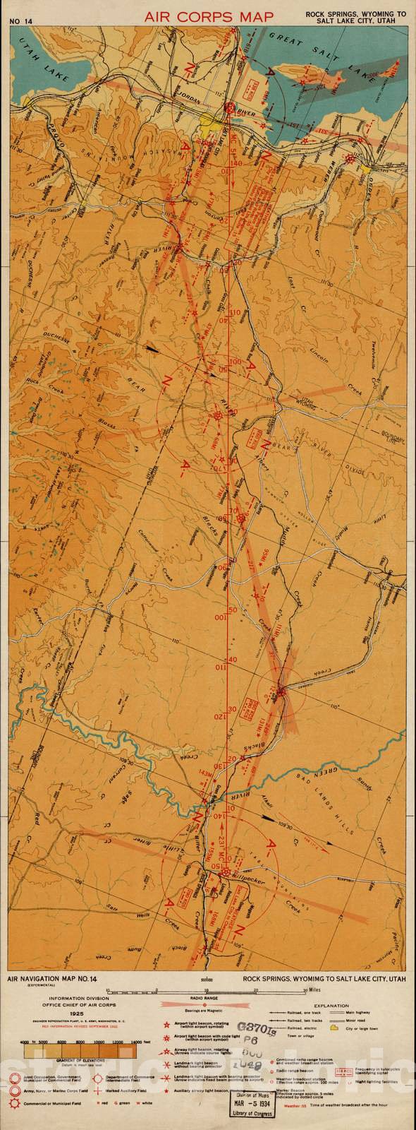 Historic 1924 Map - Aeronautical Strip maps of The United States. - No. 14, 1925 - Air Corps map
