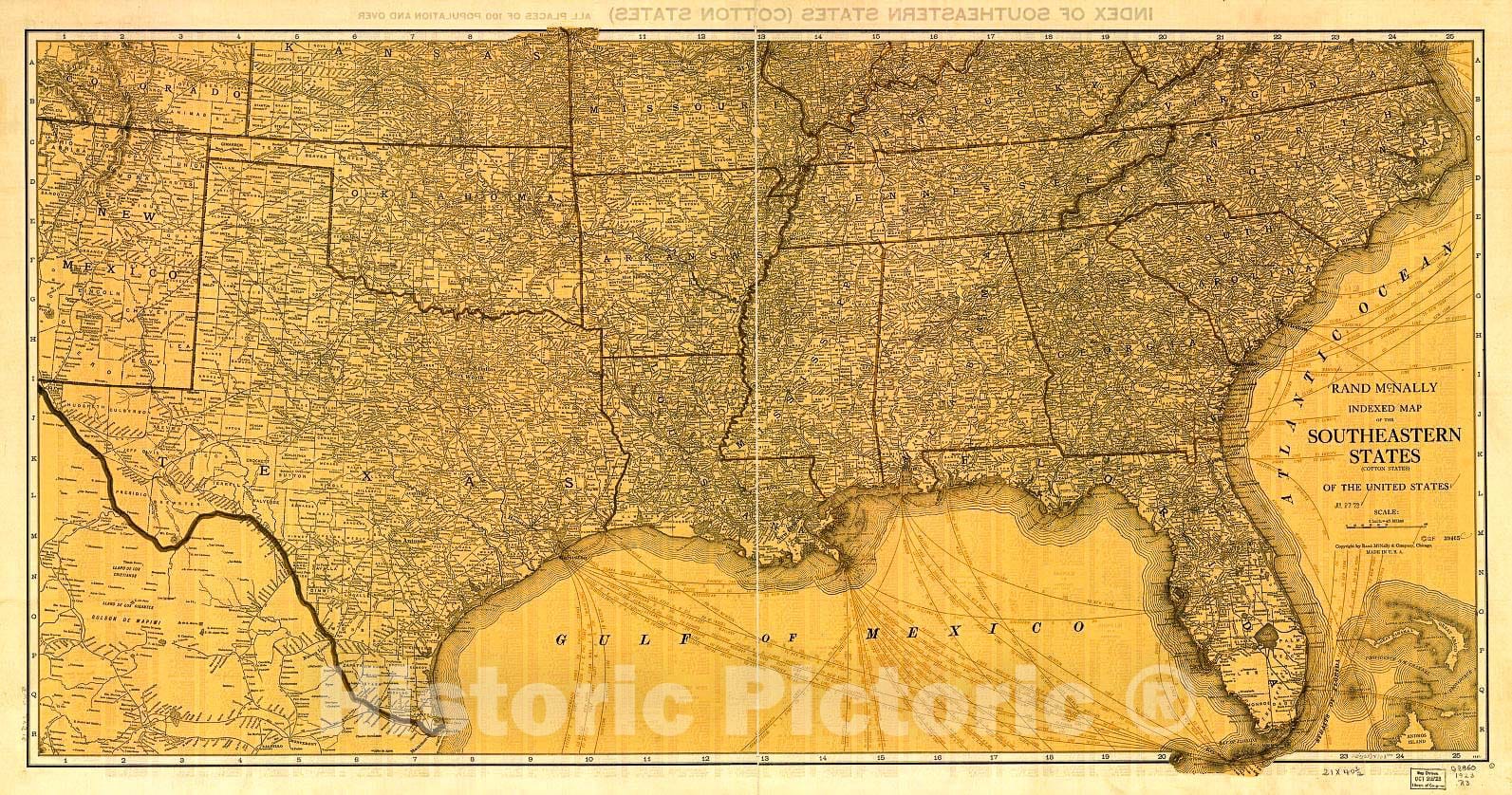 Rand McNally indexed map of the Southeastern States (cotton states) of the United States.