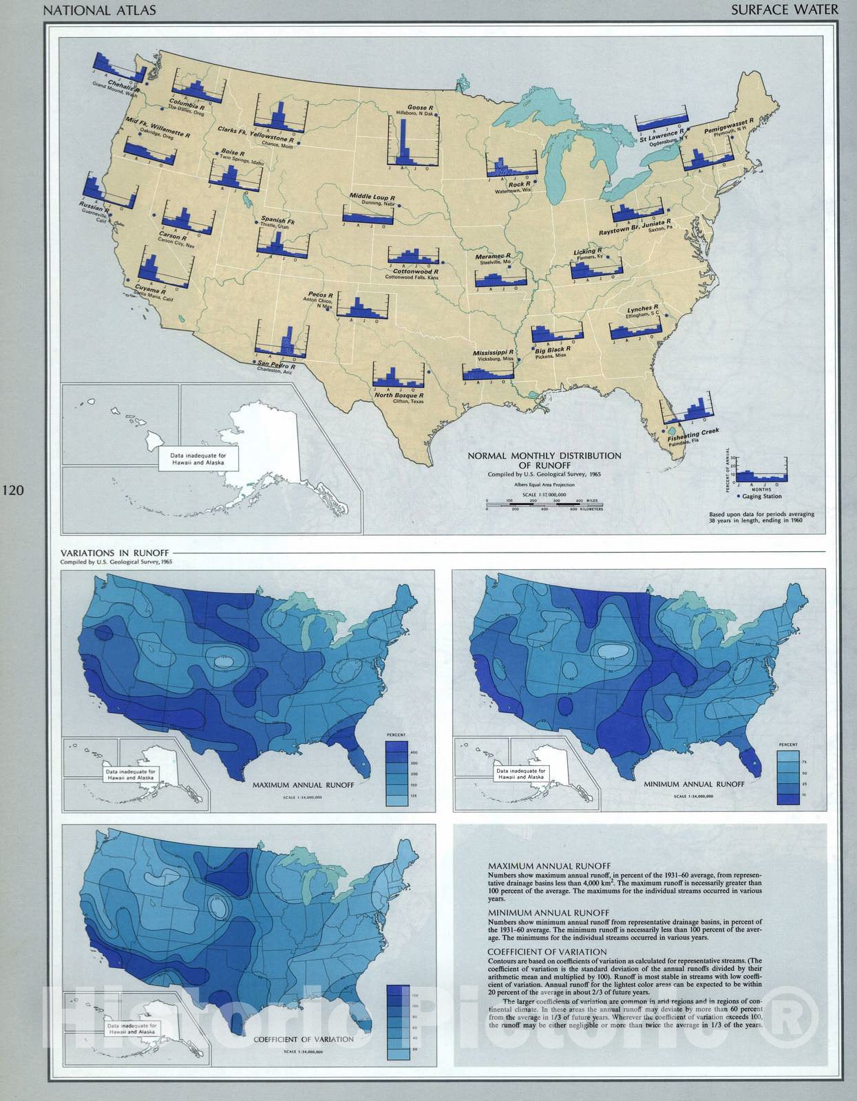 Historic 1970 Map - The National Atlas of The United States of America. - Surface Water (Continued)