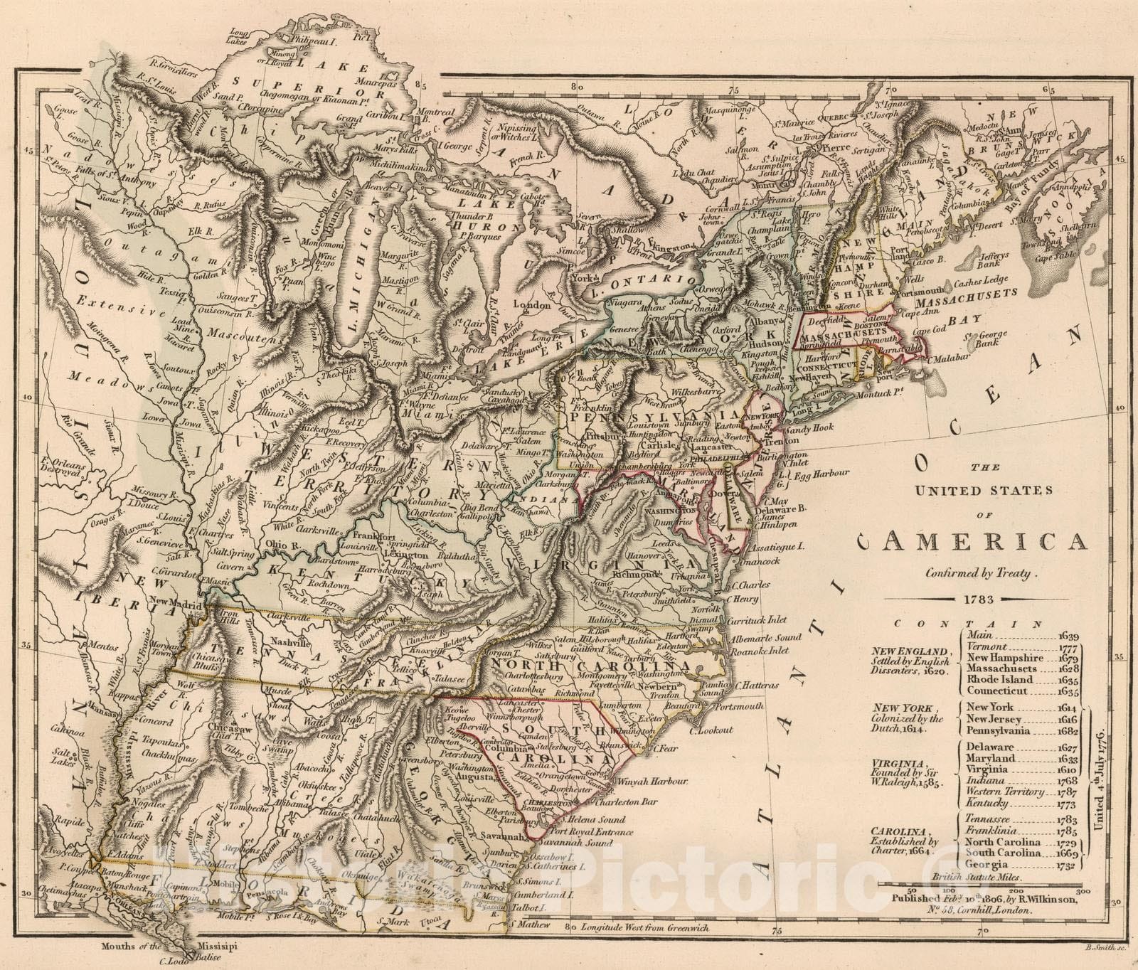 • .Historic Map : 1806 The United States of America Confirmed by Treaty 1783. v1 - Vintage Wall Art