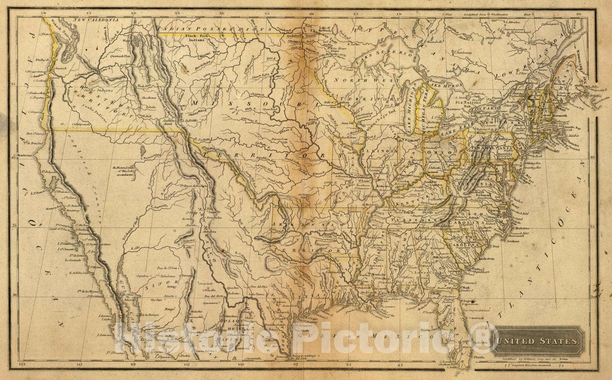 Historic Map : 1829 School Atlas - United States. Published by Hilliard, Gray and Co, Boston. (1829) - Vintage Wall Art