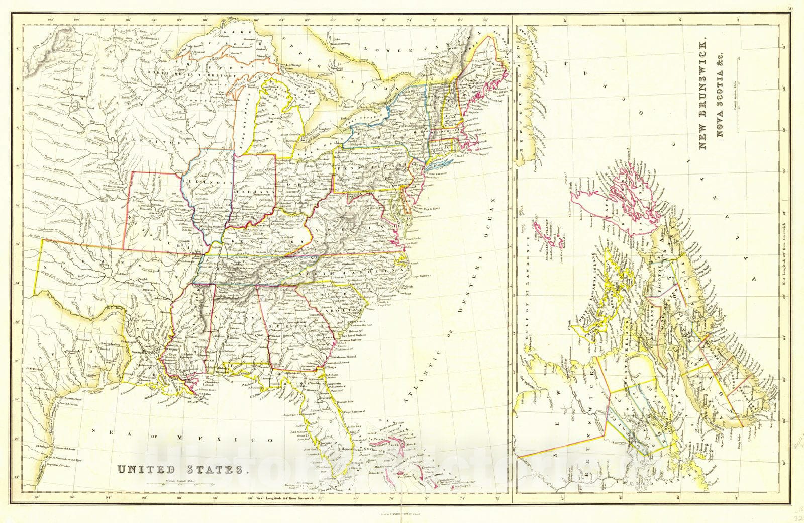 Historic Map : 1830 United States. - New Brunswick, Nova Scotia : Vintage Wall Art
