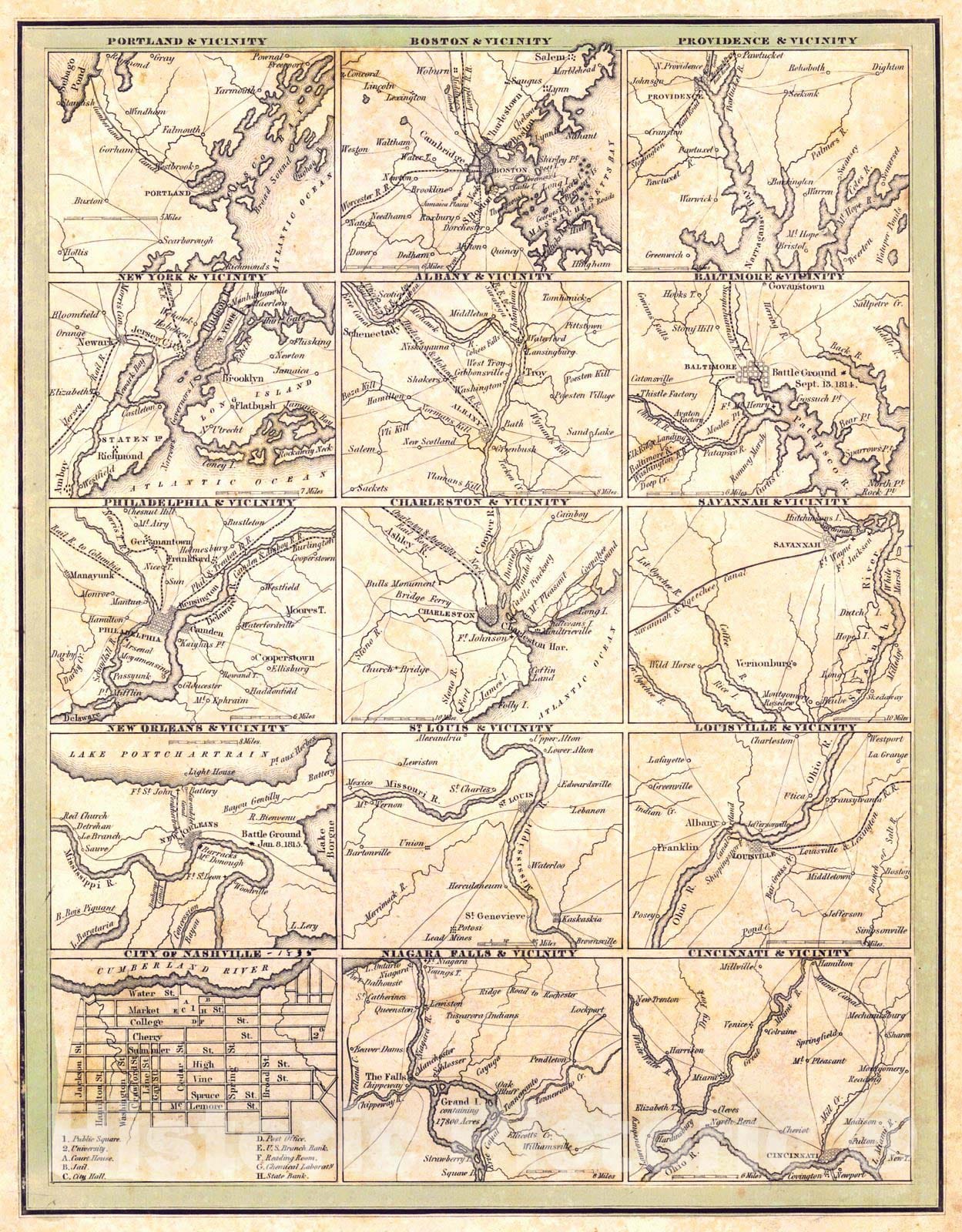 Historic Map : 1835 [Maps of the Principal Cities of the United States] : Vintage Wall Art