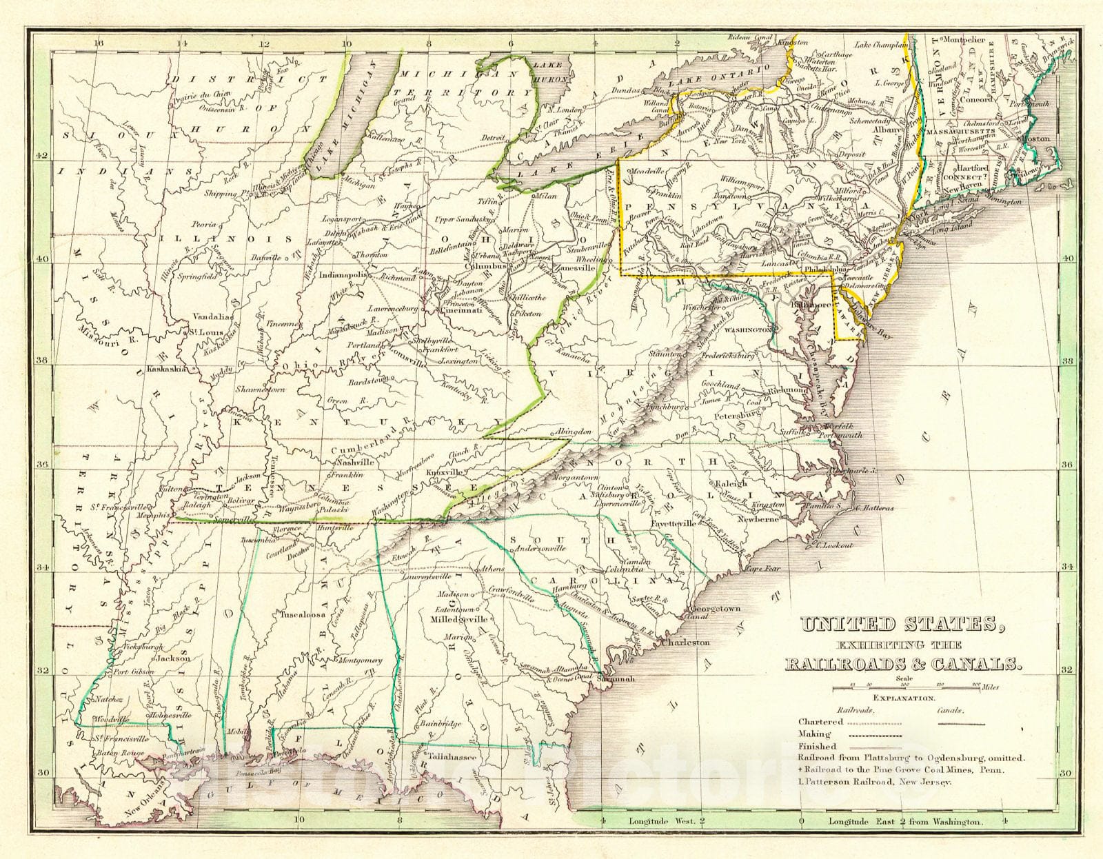 Vintage Map | 1835 United States, Exhibiting the Railroads & Canals | Bradford, Thomas Gamaliel