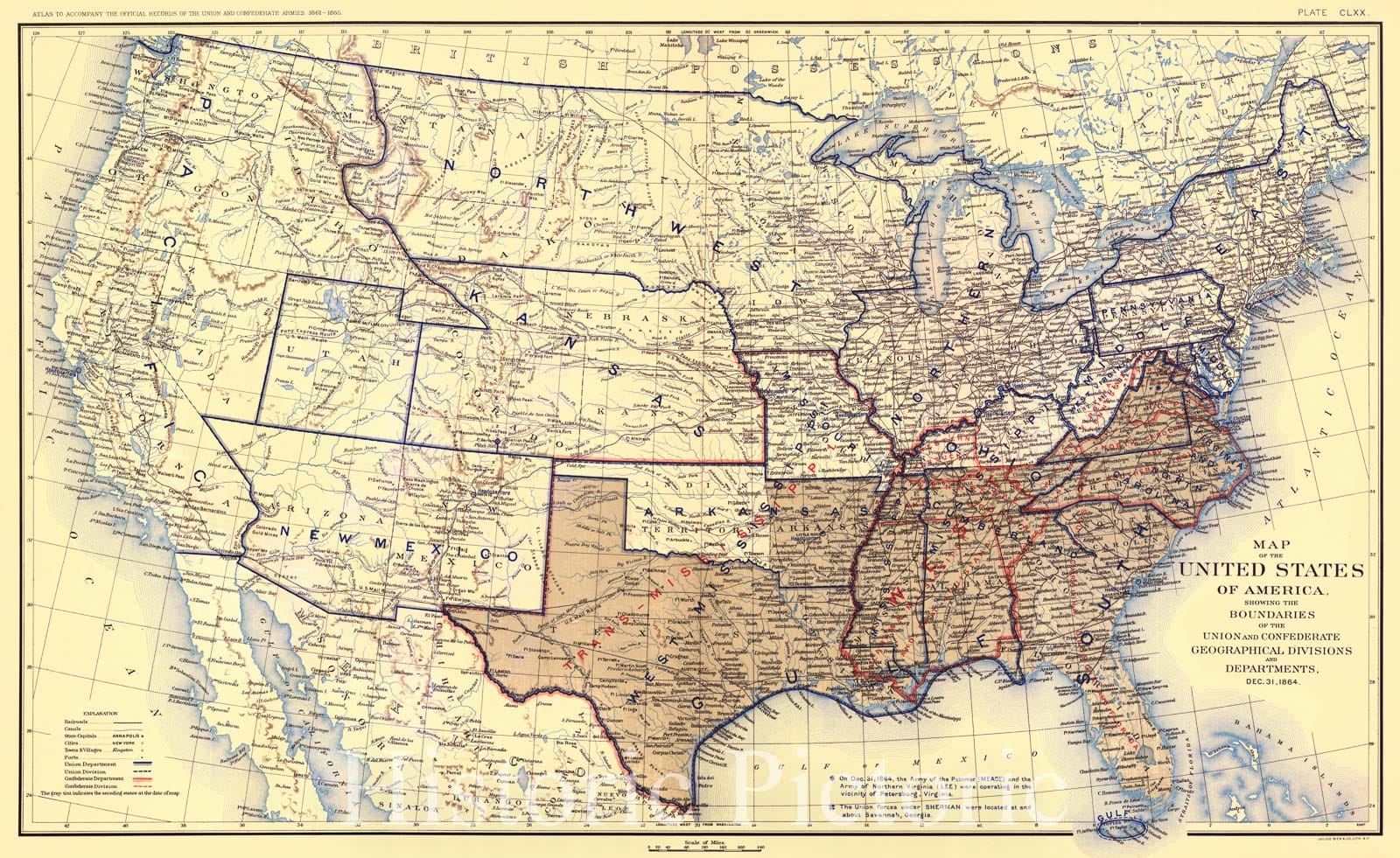 Historic Map : 1864 United States, North America (Western Half) : Vintage Wall Art
