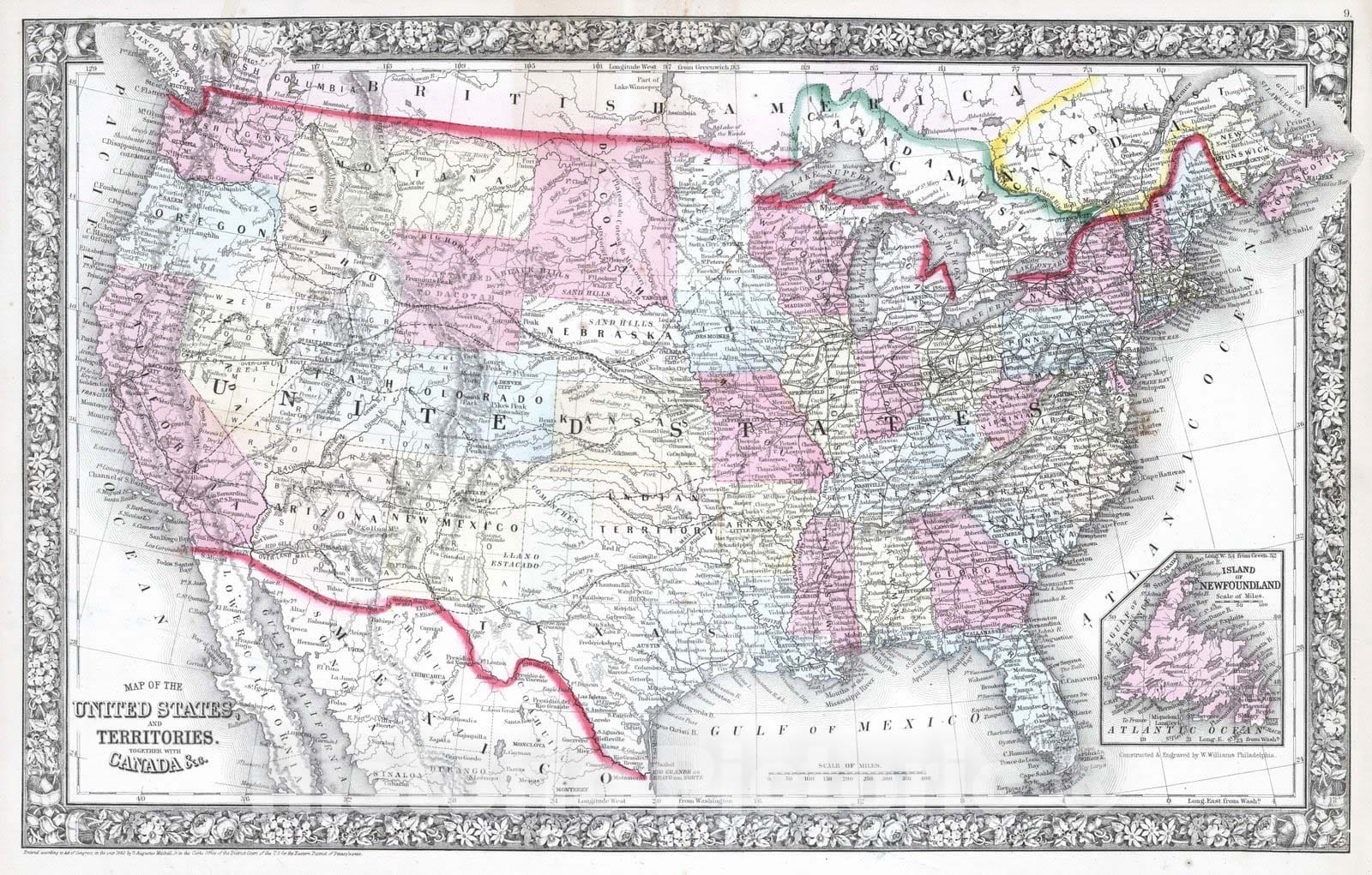 Historic Map : 1865 Map of the United States, and Territories. together with Canada &c. - Vintage Wall Art
