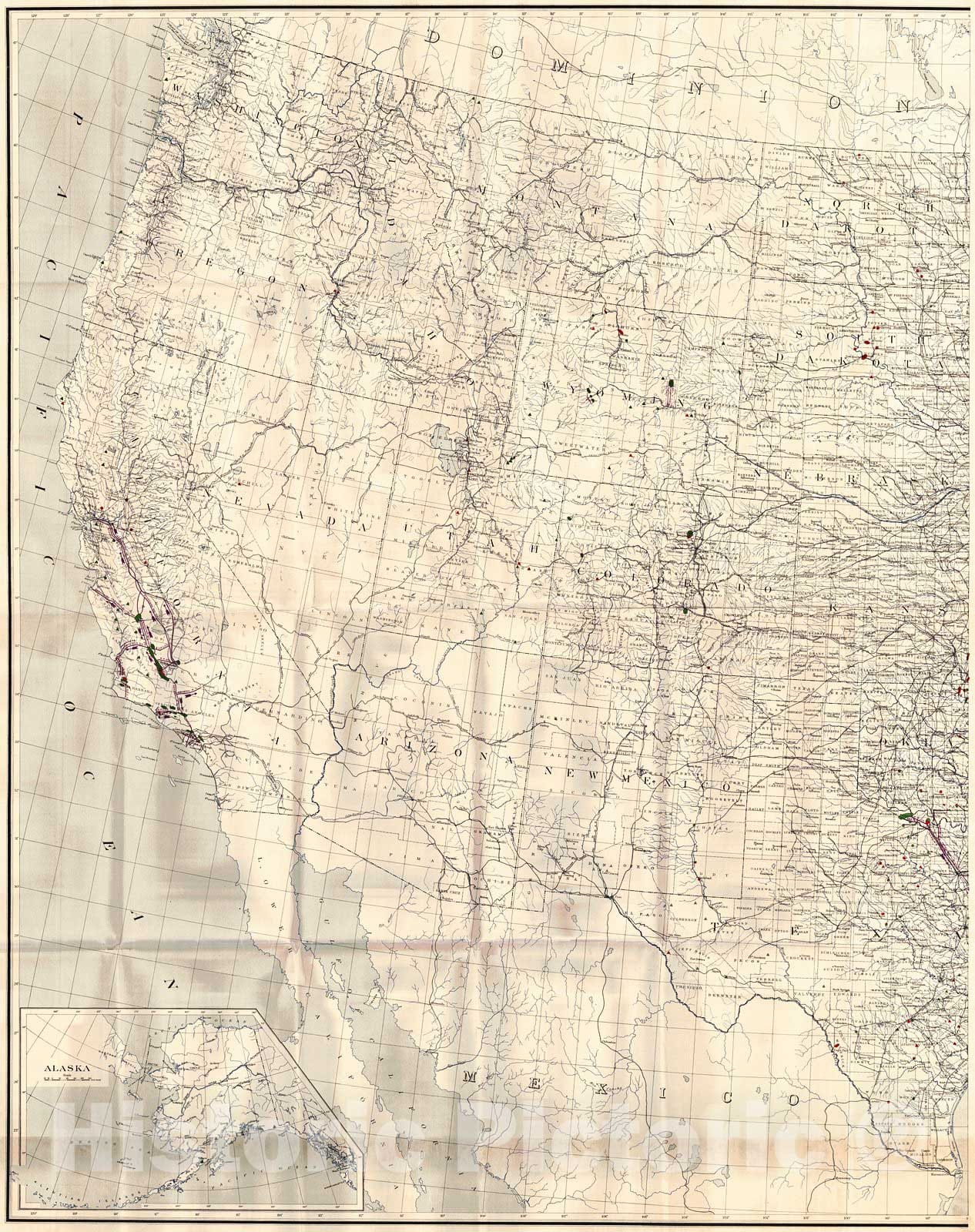 Historic Map : 1913 United States, Oil and Gas Fields in 1913 (Western Half) : Vintage Wall Art
