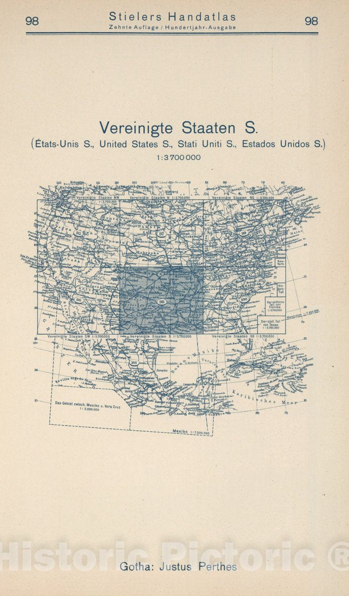 Historic Map : 1925 Index Map: 98. Vereinigte Staaten S. United States S. - Vintage Wall Art